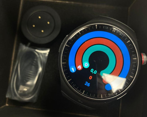 La montre Smart Watch présente un écran haute définition de 45.4 mm de diamètre et une épaisseur de 10.8 mm, combiné à un bracelet anallergique réglable de 260 mm.